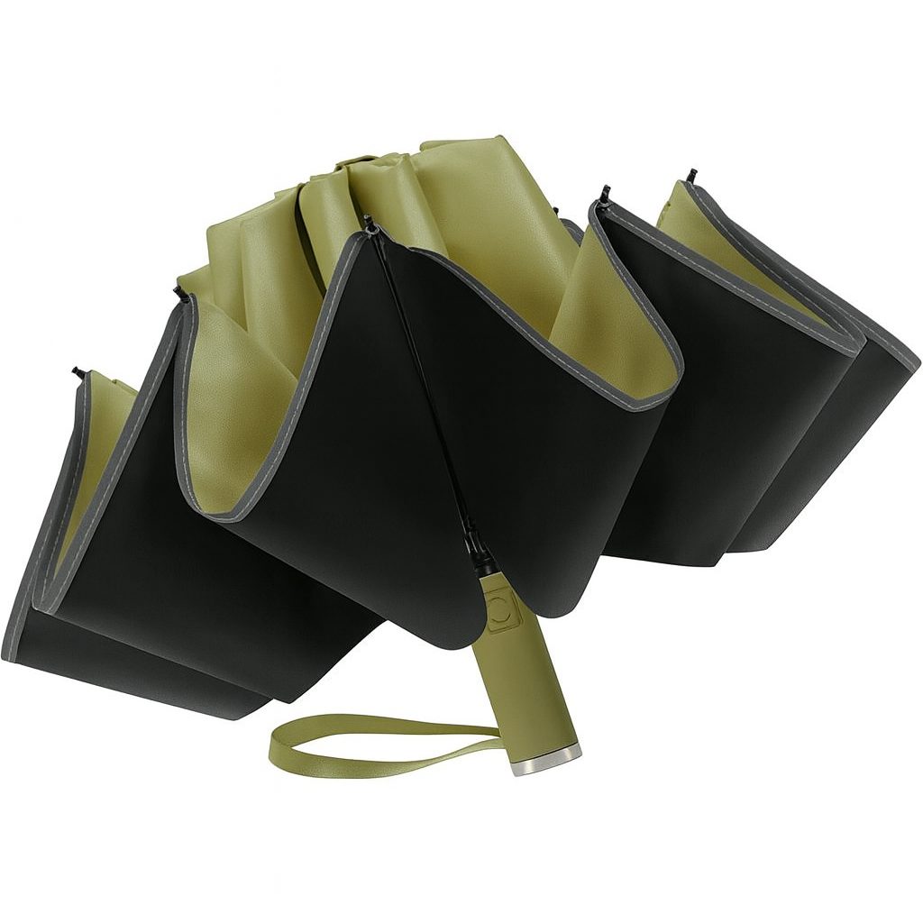 Unisex automatický obrácený deštník s reflexním pruhem - Světle zelený
